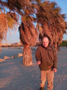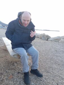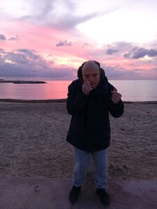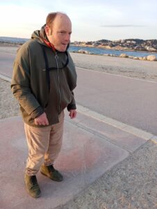 Jéjé s’est réveillé tard, il dort plus peut être en lien avec la majoration de son traitement ??? Comme tous les matins avec moi : séance de massage et d’étirement pour Gégé, puis douche puis exercices de déplacement dans l’espace (pas en avant, en arrière, sur les côtés, tournants …) enfin petit déjeuner. Ensuite dans la matinée nous sommes allés à Leclerc pour faire des courses. Après le repas et la sieste nous sommes partis vers les plages du Prado et nous avons continué notre marche vers la pointe rouge. Super coucher de soleil avec un petit goûter à la clef. C’était royal. Retour,