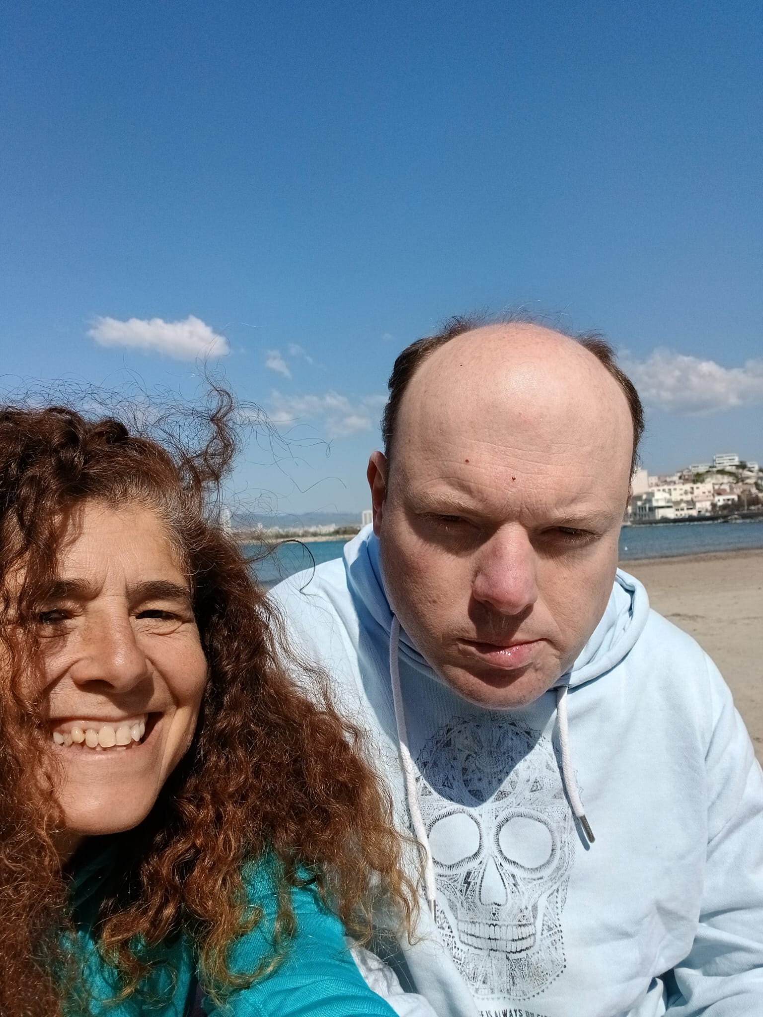 Jéjé a l’air plutôt en forme ce matin et je décide d’aller fêter l’arrivée du printemps à la plage de Sormiou. A la barrière, le gardien peu aimable, finit après insistance, à me donner le code du portail. Jéjé est ravi de retrouver notre plage préférée et se lève seul de sa chaise attiré par l’eau fraîche. On se régale. Mais au moment de partir rebelotte : ses jambes ne répondent plus et il ne tient même plus debout. Impossible pour moi de le ramener seule jusqu’au parking. J’appelle Christophe qui nous vient en aide une heure plus tard. Jéjé va mieux. Quoiqu’encore très instable, nous arrivons jusqu’à la voiture. Bref repas et il s’effondre jusqu’à 17h dans son lit. Petit tour en fauteuil jusqu’à chez Zé pour finir la journée où Christophe vient nous rejoindre.