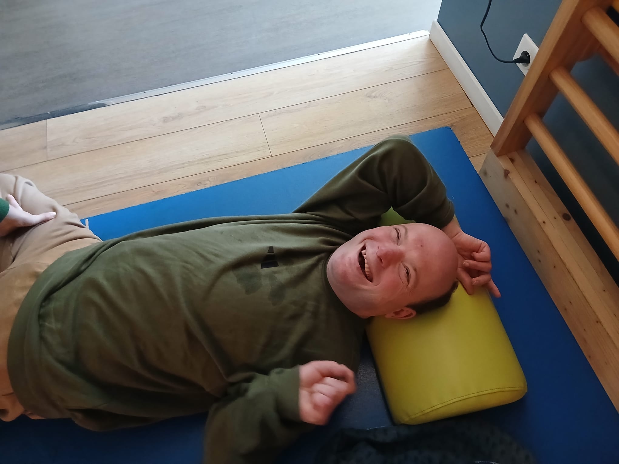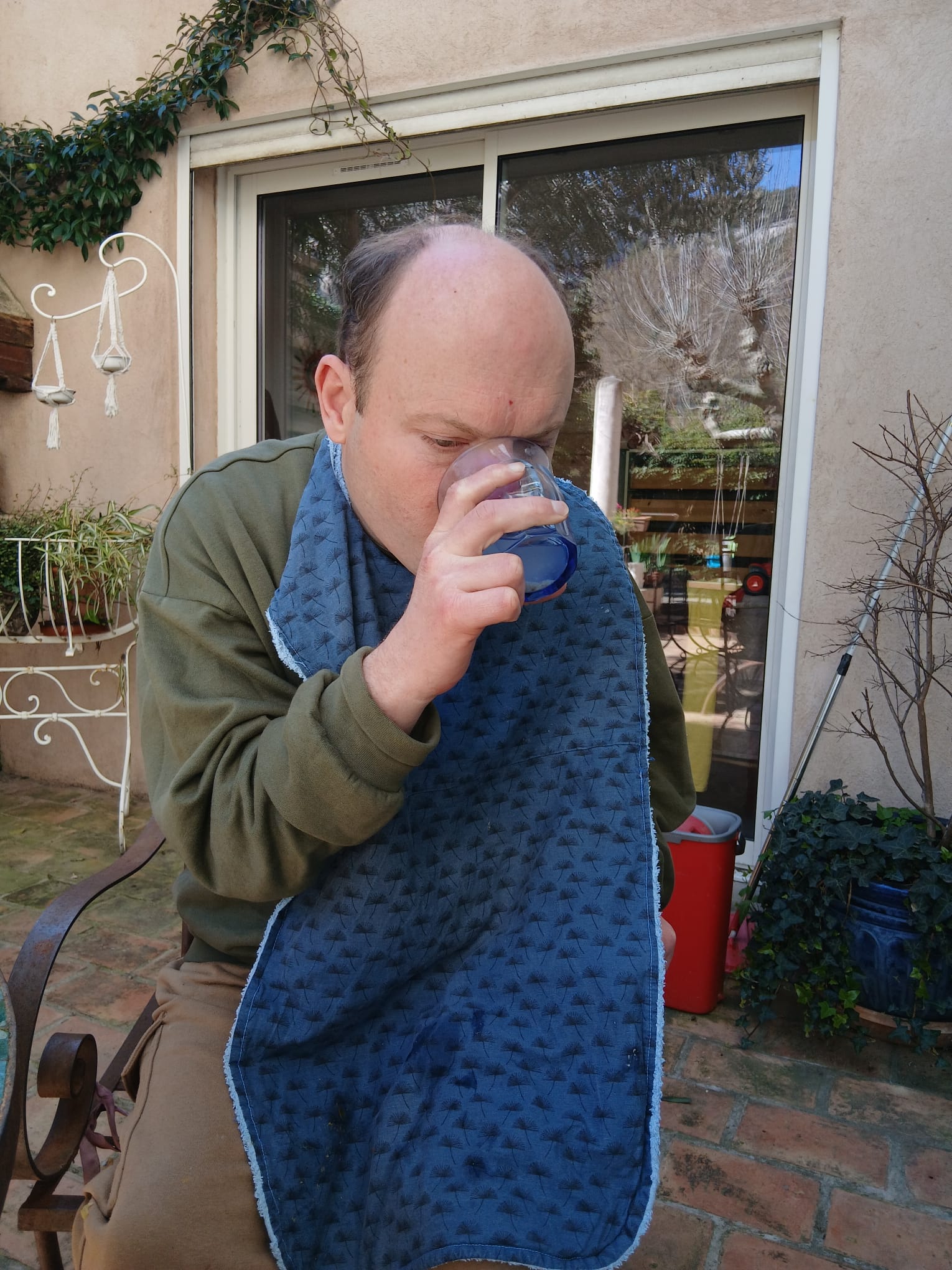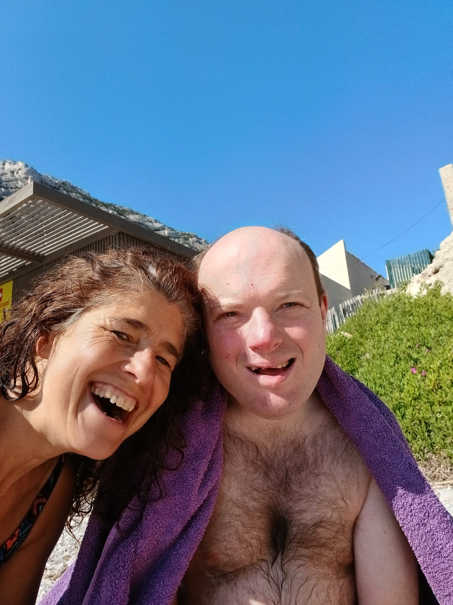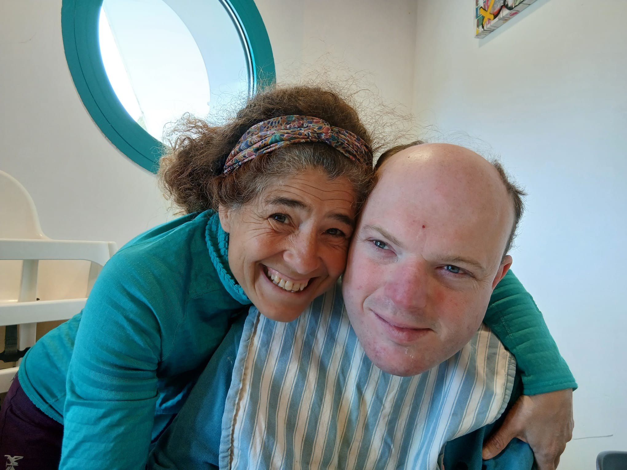 Réveil difficile ce matin. Jéjé s’endort même sur son petit déjeuner. Après la douche ça va mieux et j’ai le droit à de gros câlins d’affectueux. Puis c’est le gros ménage pour laisser le relais à Djamel à qui j’explique l’état et l’évolution des crises de Jéjé.