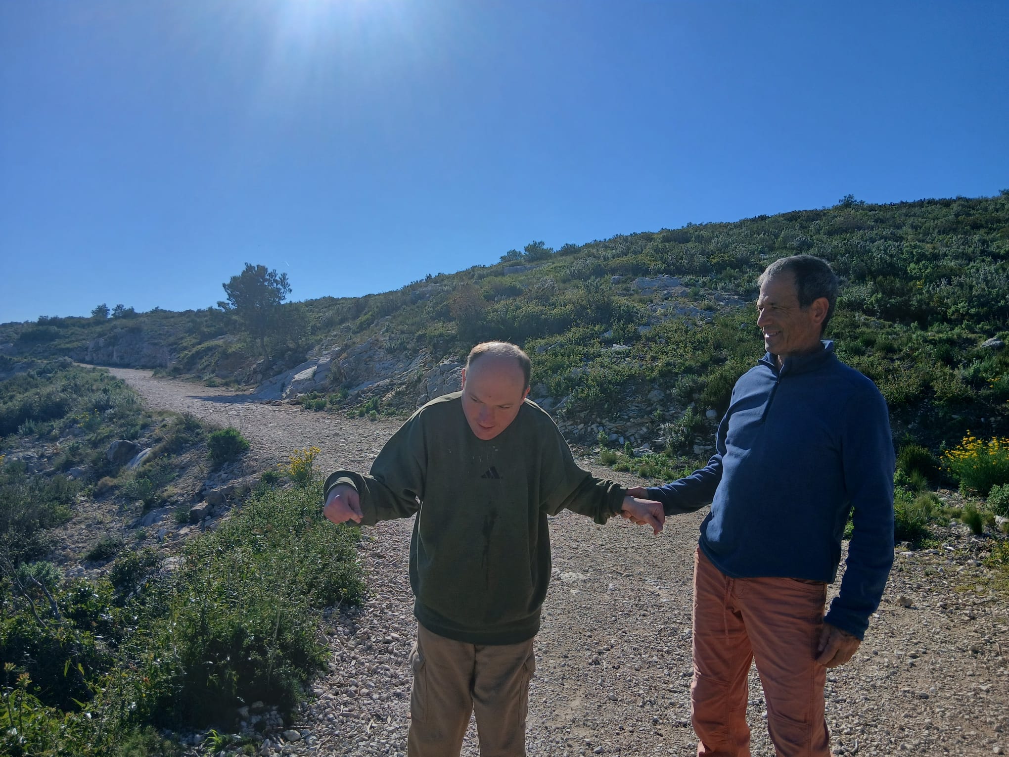 Au retour je demande à Annick de nous déposer au col de Sormiou. Mais non ! Jéjé ne peut pas avancer et part à nouveau en crise : tremblements, impossibilité d’avancer. Après les gouttes de Rivotril, nous partons en fauteuil faire un petit tour jusqu’à chez Zé, histoire de prendre l’air. Au retour la crise s’est estompée mais il reste avachi dans un état léthargique jusqu’au soir.