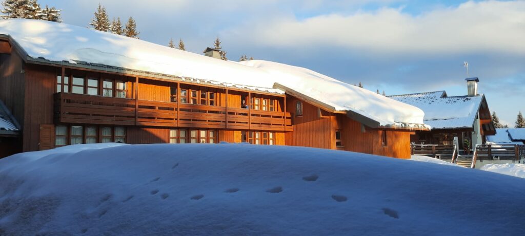 Quelle chance ce centre de vacances ! Comme nous n’avons pas de logement cette année, Mathilde de Savoie nous déroule le tapis rouge pour séjourner une semaine dans le centre de la CCAS des Saisies, réservé normalement aux agent-es du comité d’entreprise EDF/Energie. Toute l’équipe, dont Dédé l’adjoint et Jérôme le pilote, nous accueille adorablement.