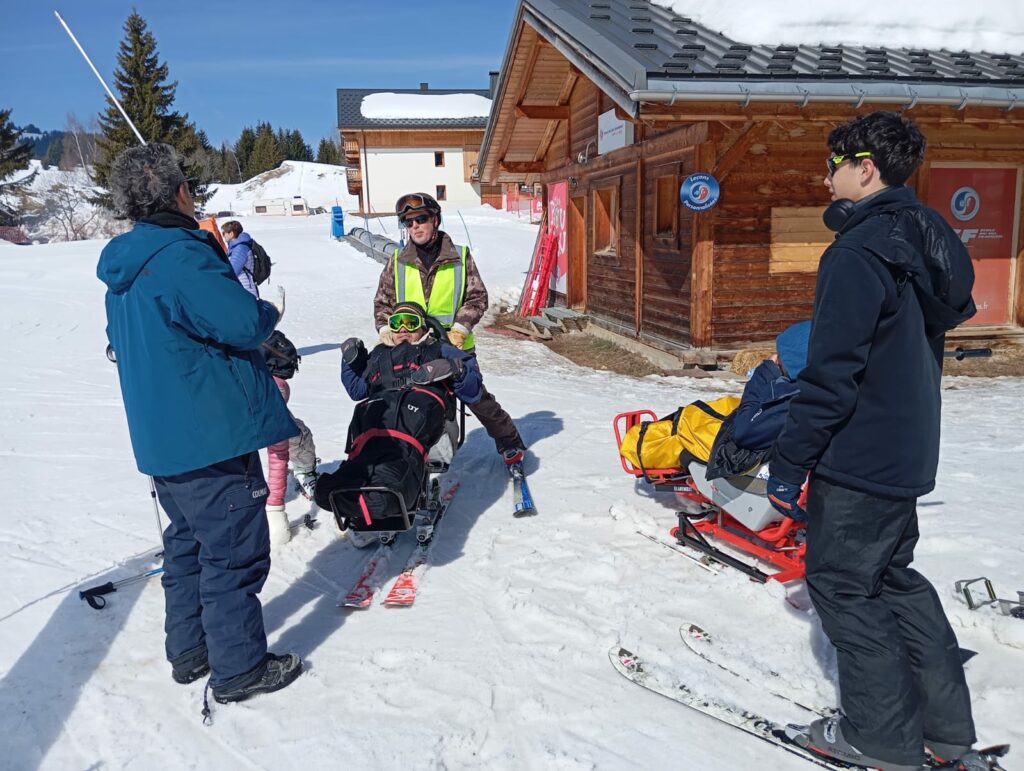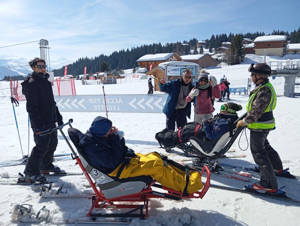 Sarah et Annick se promènent en fauteuil-ski avec Greg aux commandes et comprennent pourquoi Samuel, Jérémie et Leïla en redemandent chaque hiver.