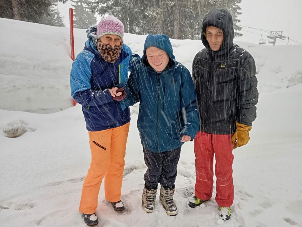 - Jérémie n’est pas en forme. Est-ce que ça a du sens qu’il reste au ski ? On décide que oui, ce ne sera pas bien différent en bas et ici, quand il a une fenêtre sans crises, il rigole beaucoup avec son frère dans le fauteuil-ski.