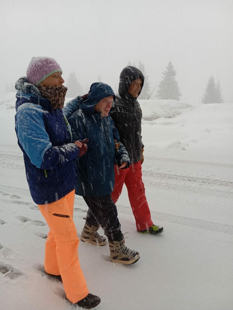 Ils n’allaient pas rater une si belle occasion de naviguer en père peinard dans la grosse poudreuse bien fraîche ! Ni leurs accompagnateurs et accompagnatrices d’ailleurs … la dernière chute de neige de la saison nous est tombée dessus, 30 cm devant les portes du centre de vacances.