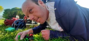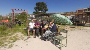 Puis nous allons au jardin de l’auberge avec Antoine et Djamel pour voir l’équipe faire du bon pain en plein air, puis écouter quelques chansons de Djamel avec sa guitare « lélé ». Ensuite, nous sommes allés nous reposer dans l’herbe au parc Borély, où Djamel nous a rejoints.