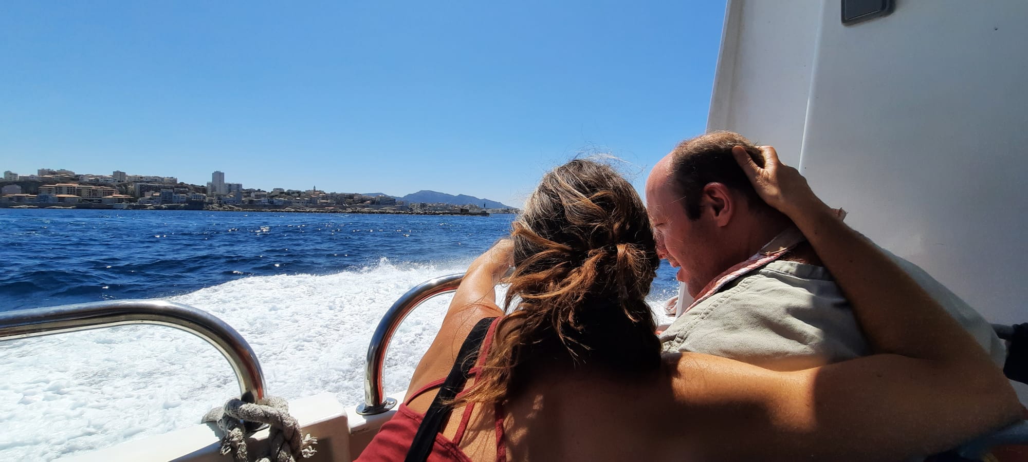 Avec Annick on prend le bateau navette de la Pointe Rouge jusqu’au Vieux Port ; c’est super sympa, un bon bol d’air iodé et en 35min on est en plein centre ville! On se balade autour du vieux port, on se boit un café crème pendant que Jéjé mange de la brioche