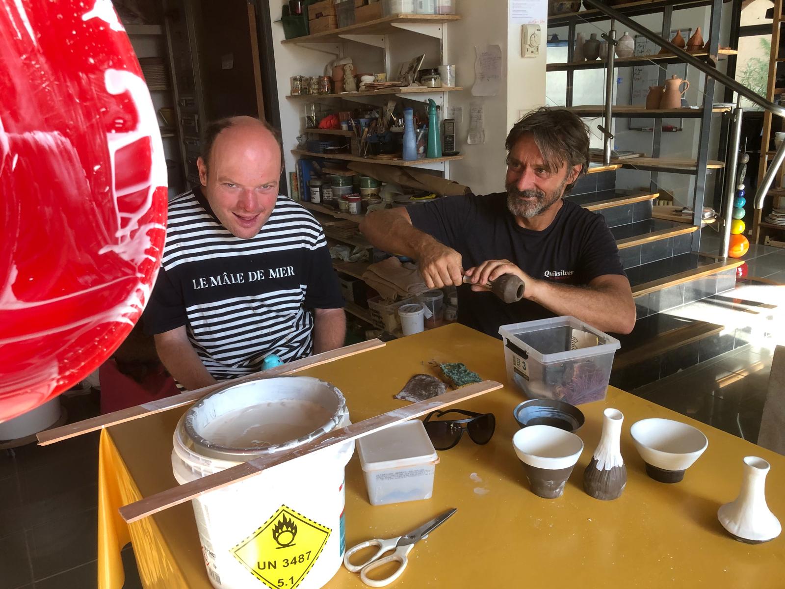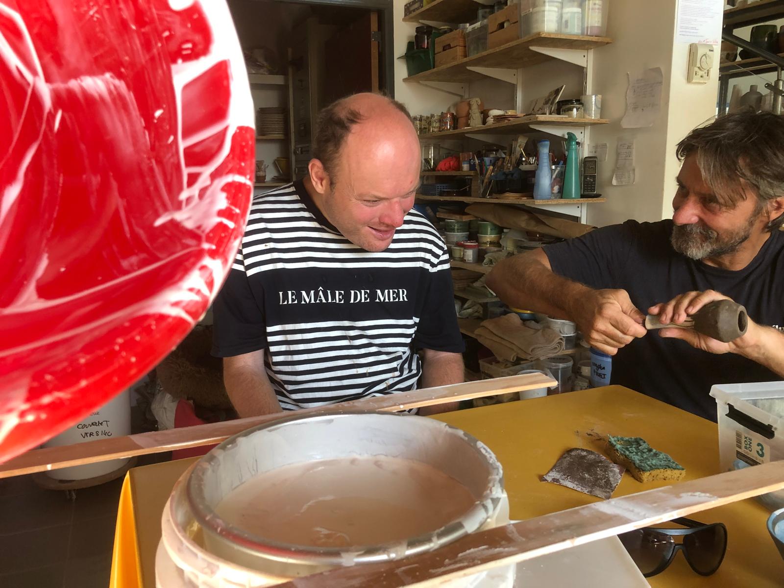 Piscine le matin, l’aprèm on part à Aubagne : je dois émailler quelques pièces à l’atelier, pendant ce temps Manu va faire une balade au parc Jean Moulin avec Jéjé et ils me rejoignent ensuite. Jéjé marche bien, grosse évolution pour moi qui ne l’avais pas gardé depuis fin avril