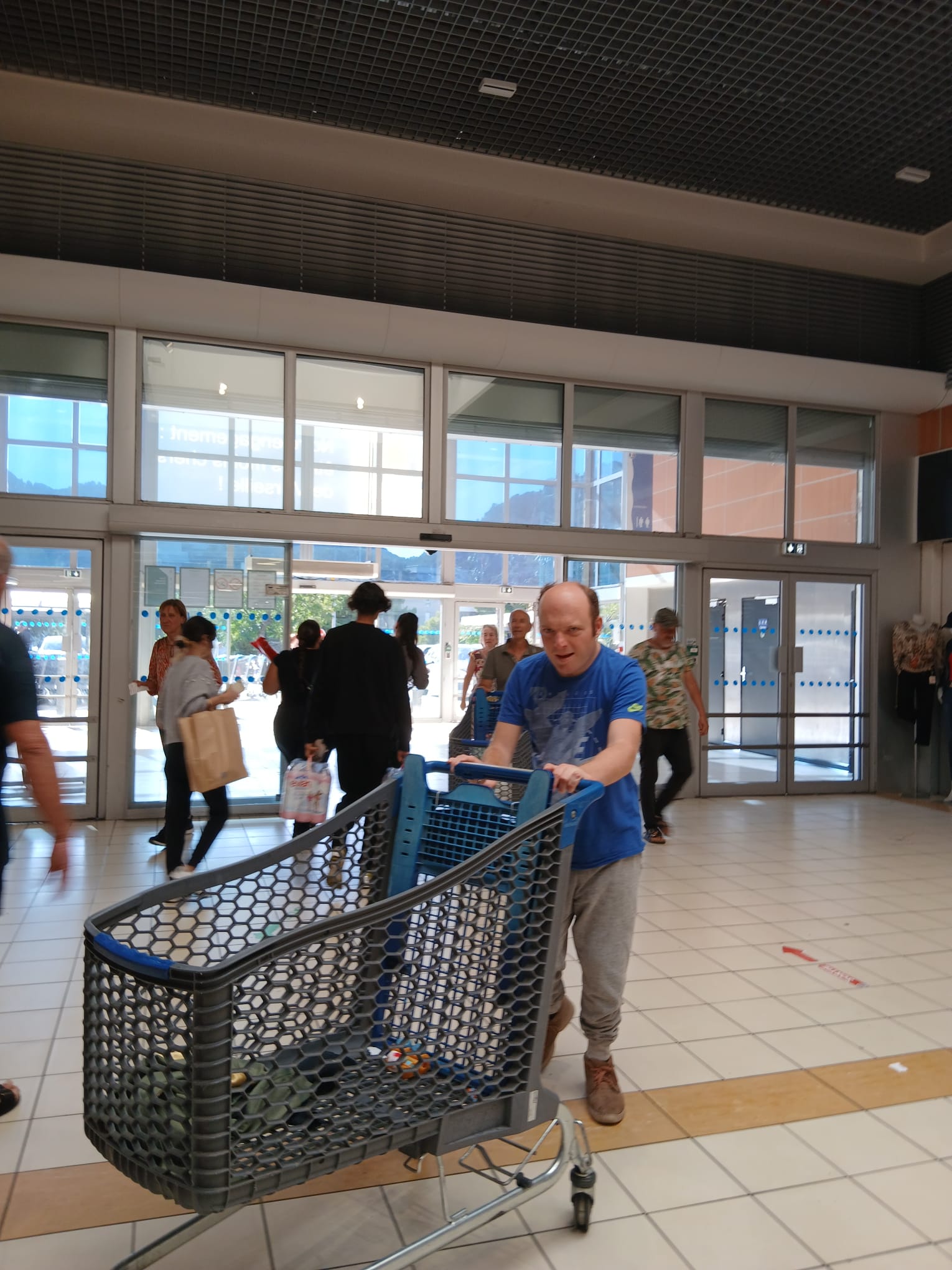 Après le traditionnel repas du lundi avec Annick, Henri et Michelle nous partons nous dégourdir les jambes au parc de la Jarre. A la vue des fontaines, Jéjé est fou de joie. Le temps est idéal pour se promener dans ses belles allées. Quelques petits exercices d’équilibre sur les barres et nous partons ensuite faire les courses à Leclerc. Jéjé est en grande forme. Ça fait vraiment plaisir de le voir aussi vif… Il pousse son chariot avec détermination mais arrive difficilement à gérer sa frustration devant son chariot qui se remplit.