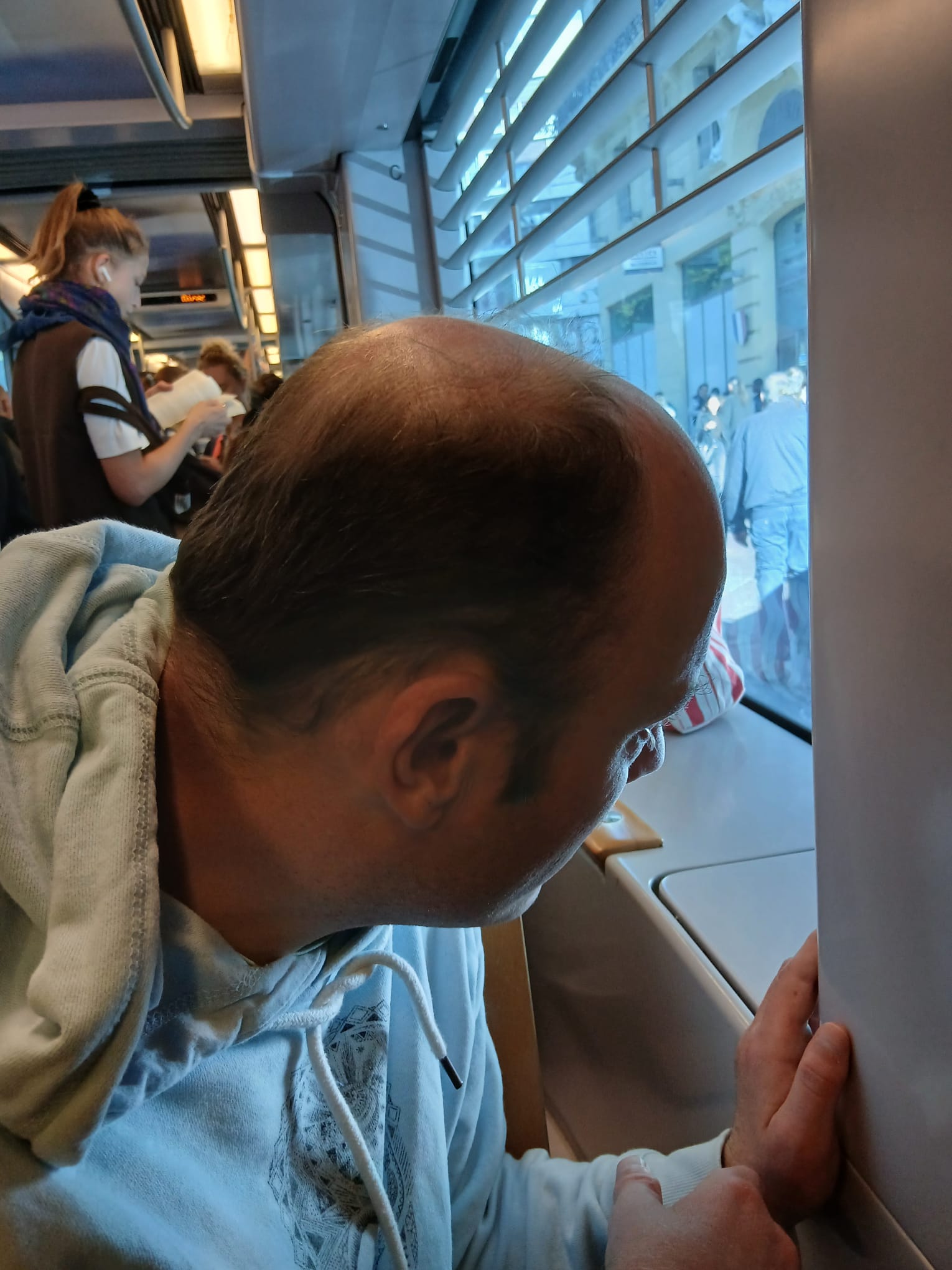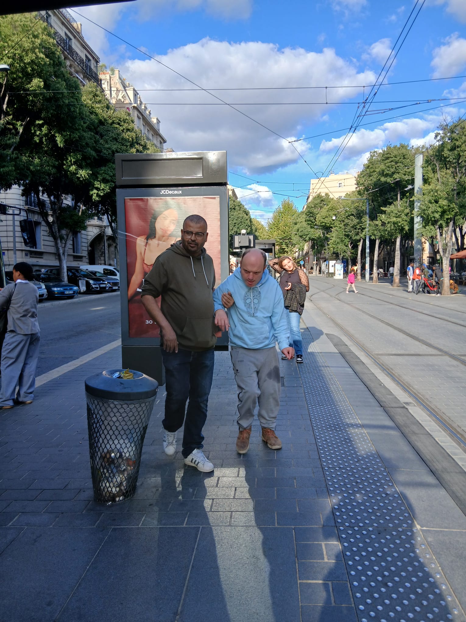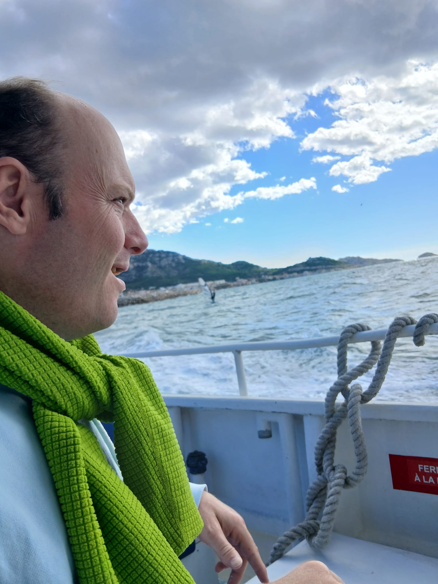 En matinée, nous avons la visite d’Antoine puis nous partons au rdv du kiné. Belle séance un peu sportive pour Mathieu. Nous allons ensuite pique niquer à la plage de la Pointe Rouge où nous croisons Djamel prêt pour une séance de wing. De là nous allons au port prendre la navette maritime direction Vieux port. Jéjé est ravi et pousse des cris de joie quand le bateau prend de la vitesse. A pied nous allons récupérer le tram bondé à ́Noailles. Jéjé, un peu esquiché, est ravi. Behladj nous rejoint aux Réformés où nous prenons un verre au bar. Puis chemin inverse tram, marche et navette.. Quelle belle journée..