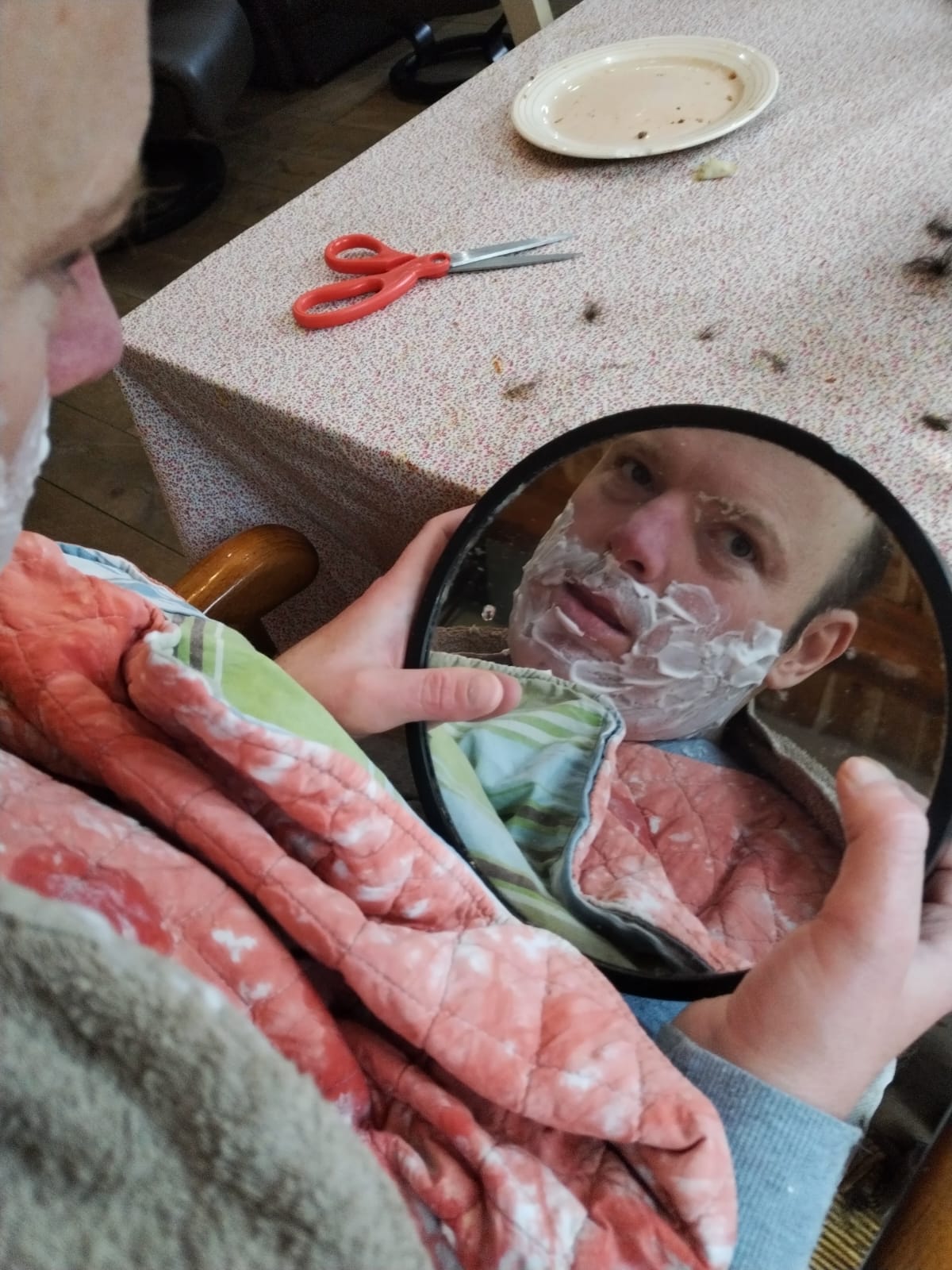 Je sors ma casquette de coiffeuse pour faire une petite beauté à notre Jéjé. Coupe de cheveux, rasage de près. Malgré des ciseaux non adaptés, le résultat est satisfaisant. Jéjé se laisse bien manipuler en se regardant dans le miroir. Puis nous partons à la piscine de Cassis. Grande surprise puisque dorénavant l’entrée est gratuite pour Jéjé et un accompagnant. Nous rentrons donc comme des V. I. P dans le bassin avec la musique entraînante de l aquagym. Aussitôt dans l’eau Jéjé retrouve son sourire et nous y restons une bonne heure avec à la fin le privilège d’avoir le bassin pour nous. L’eau de la douche très chaude rajoute un instant de bonheur. Nous allons ensuite au Snack mais Jéjé ne tient pas debout et au bout de quelques minutes il s’endort littéralement sur son assiette. Impossible d’avaler ce qu’il a dans la bouche. Nous ne tardons donc pas à rentrer pour une grosse sieste comateuse. Annick me propose de faire une petite marche nocturne jusqu’à chez Zé, histoire de se dégourdir les jambes et de le stimuler un peu. Mais pas facile de lui décrocher un sourire.. Le soir, au coucher, je suis bien contente de l’aide de Christophe car Jéjé a fait ses besoins dans sa couche et c’est le branle bas de combat..