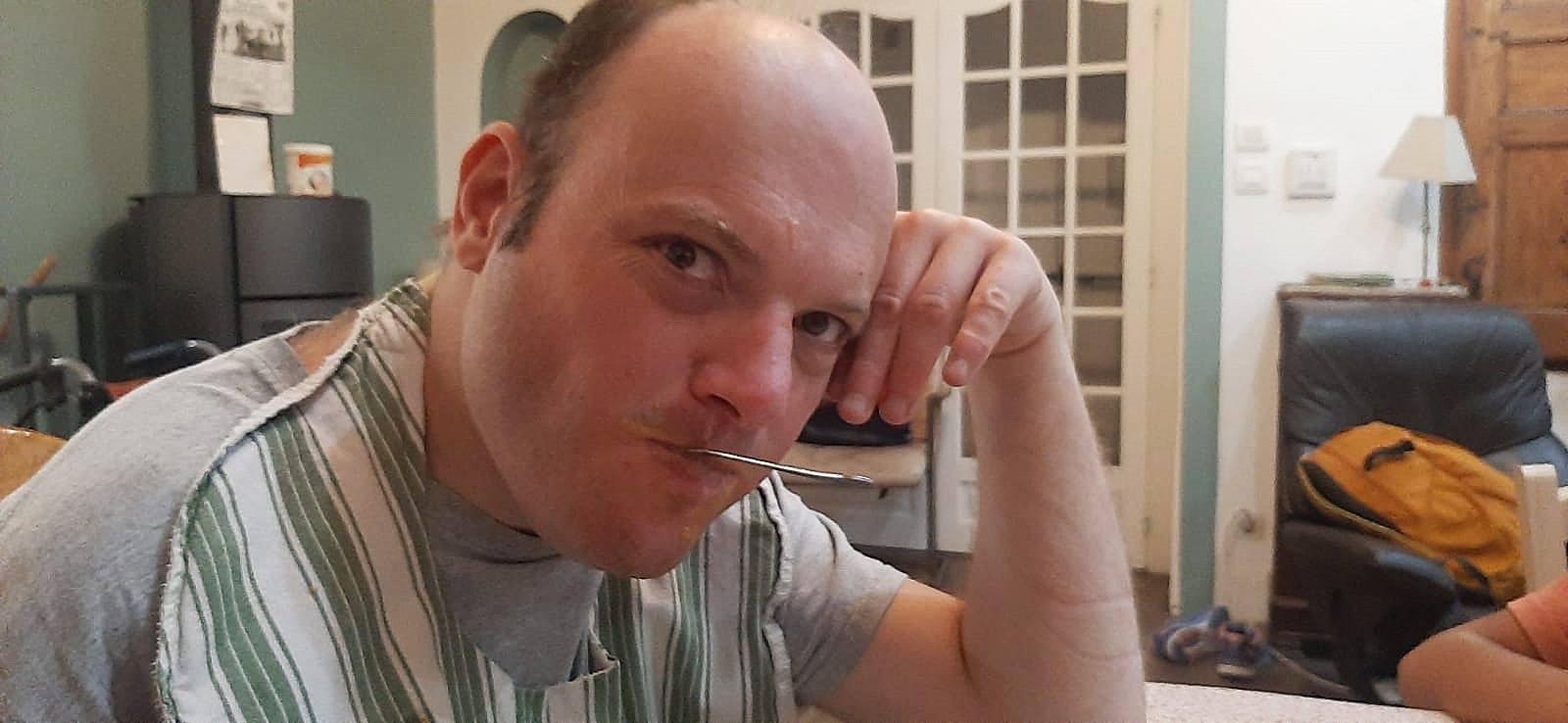 Retrouvailles dans une belle complicité avec Jéjé bien éveillé, regards bien présents et expressions bien vives.