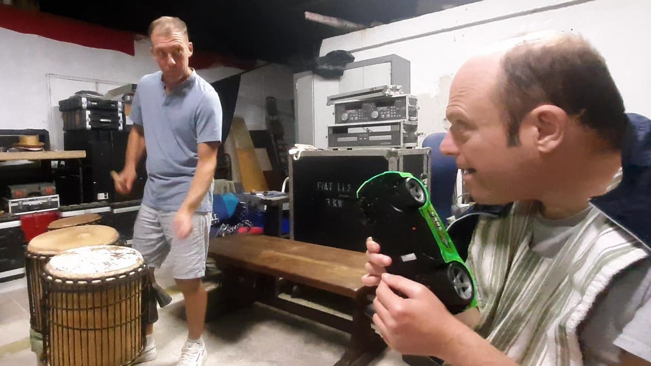 Atelier de percussions collectif avec Jéjé autant captivé ,