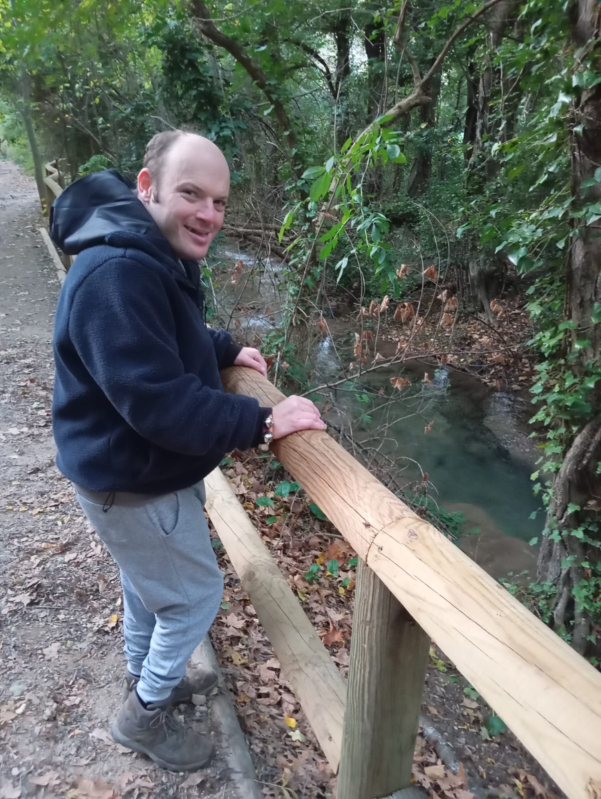 J’ai retrouvé Jéjé , Annick, Michelle et Henri. Nous avons déjeuné ensemble comme d’habitude un bon plat préparé par Michelle. Jéjé avait toujours sa gêne au niveau de la bouche et faisait toujours autant de crises. Après une sieste agitée nous sommes partis pour notre grande marche favorite sur le parc de Saint Pons. Jéjé a super bien marché ; un vrai sportif, il était super joyeux, la forêt et surtout la rivière lui ont fait un grand bien. Ensuite nous sommes passés chez Valentin pour assister à son cours de Djembé et avons mangé notre pique nique là bas car le soleil s’est couché tôt et il faisait un froid humide. Antoine y était aussi. Super soirée pour Jéjé qui a bien dansé L’Afrique.
