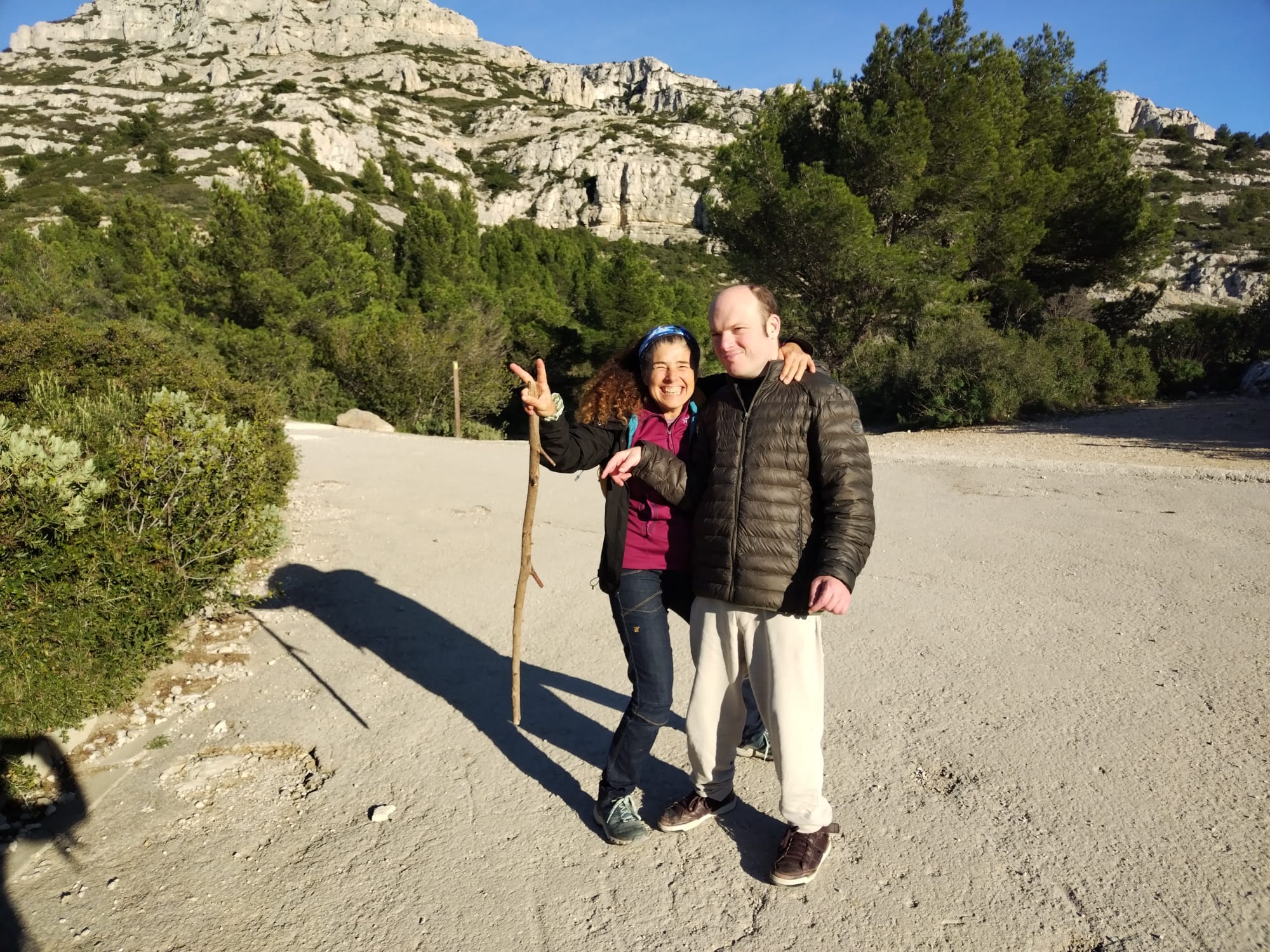 Après une petite visite chez Annick et Henri, Jéjé est bien en forme pour son rdv du kiné avec Mathieu. A la salle d’attente il ne tient pas en place. Il part donc tout seul en montant les marches et c’est parti pour une demie heure d’étirements dans tous les sens. Mathieu le kiné me confirme l’importance de la marche pour Jéjé. Nous partons ensuite pique-niquer à la pointe rouge. L’eau est à 15 degrés on va donc juste faire un aller retour sur le bord de la plage. J’enchaîne ensuite à Luminy pour notre randonnée préférée jusqu’au col de Sugiton histoire de mettre en application les recommandations de Mathieu. Même si il faut un peu le pousser au départ, Jéjé est très content et décide bien souvent de marcher seul.. On a du temps…