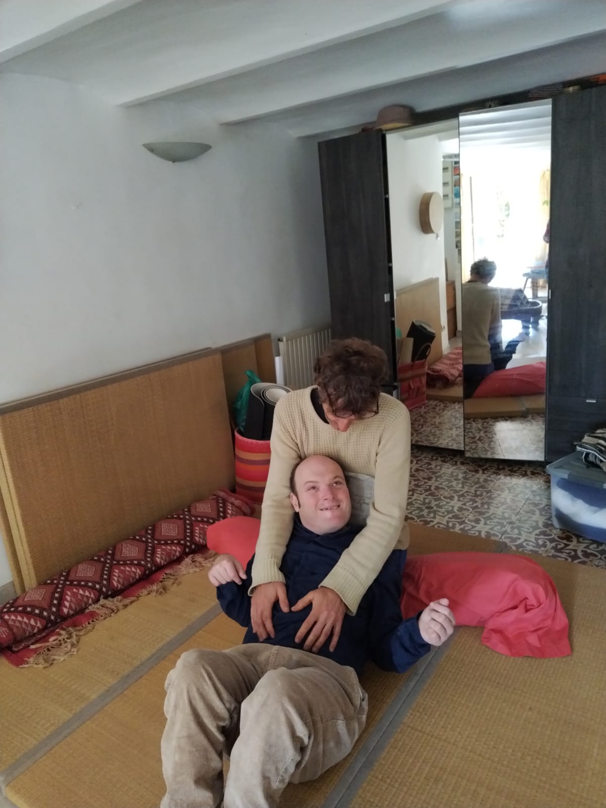 Après avoir un peu trainassé la matinée il est temps d’aller à l’activité favorite de Jéjé : la balnéothérapie ! Quel accueil.! Ça fait plaisir. Jéjé est impatient de rentrer dans l’eau à 32 degrés. On retrouve notre petit arrosoir avec lequel nous jouons presque inlassablement à un jeu de cache cache sous l’eau. Après une bonne heure de baignade où jéjé a presque tout bu le bassin, nous partons pique niquer au parc Borely et faire une belle promenade dans le sous bois. Nous nous arrêtons ensuite chez moi pour une petite sieste.. Aie aie aie jéjé a bu trop d’eau il faut à 2 reprises le changer.. La journée se termine par un bon repas chez moi avec Christophe et Stéphanie ma voisine. Jéjé a dévoré le repas..