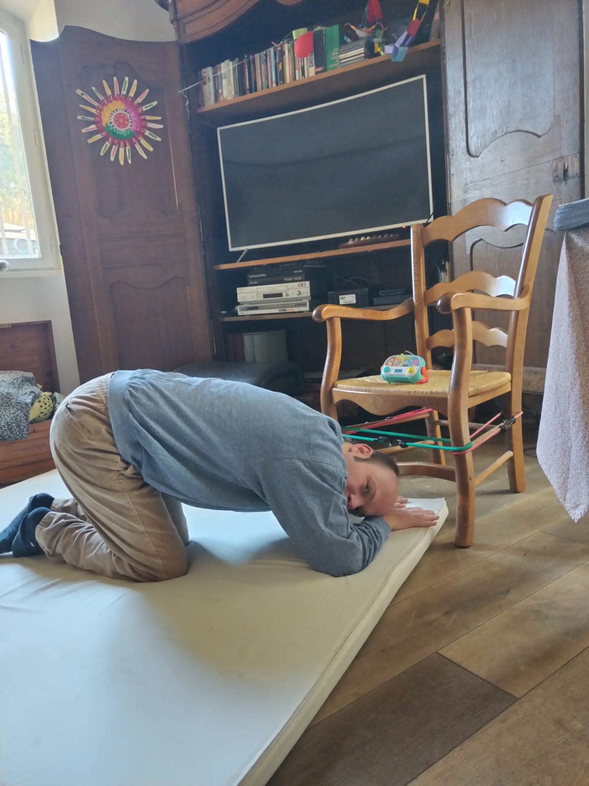 Réveil très matinal à 6h30..Jéjé a mouillé ses draps.. Bon c’est parti pour le grand ménage de la semaine. Je laisse Jéjé à Manon, Theo et les filles qui prennent ma relève du week-end (NB d’Annick : mea culpa, me maxima culpa … 2 inscrits pour le WE … c’est mieux que 0 ! c’est Sébastien qui restera !)