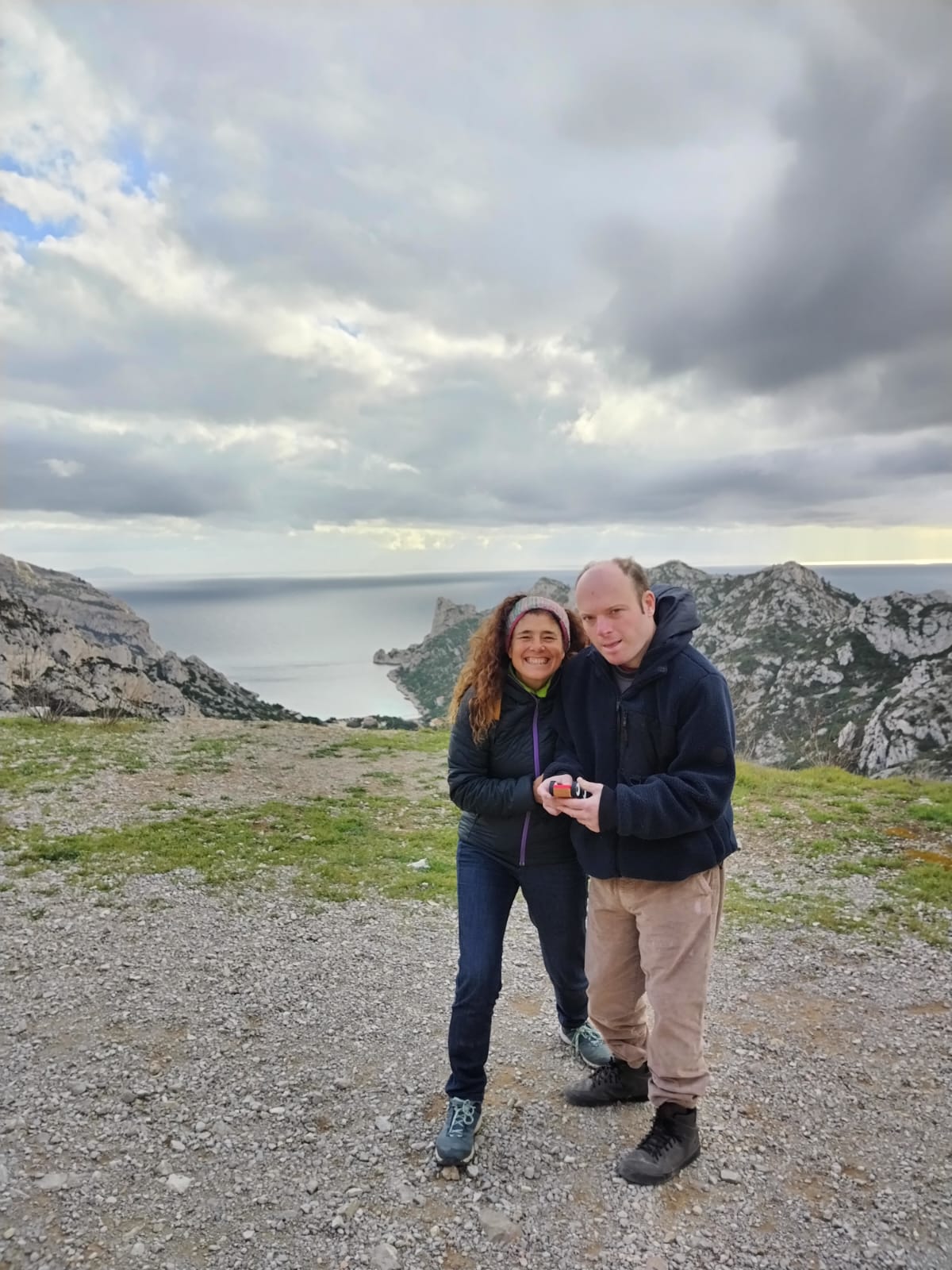 Jeudi : la matinée passe très vite entre le petit déjeuner, la douche et la visite de l’installateur EDF( pour un nouveau compteur électrique) qui redécouvrait 30 ans après la maison. Et oui il y avait vécu étant enfant/ado. Il raconte.Parfois les hasards n’existent pas.. Nous allons ensuite au RDV du kiné. Jéjé est toujours aussi impatient de se faire masser. La salle est pleine et Jéjé est très détendu et profite donc pleinement des étirements de Julie. De retour à la maison l’appétit est bien là et nous apprécions un bon repas. Puis nous partons pour une belle promenade.. Départ Luminy mais nous prenons cette fois-ci des chemins de traverse encore inconnus. Jéjé veut marcher seul. L’équilibre parfois instable, il avance bien. Les chemins se rétrécissent mais on continue.. Travail de proprioception. Le décor est magnifique avec comme fond le mont Puget. La marche est vraiment très importante pour Jéjé.