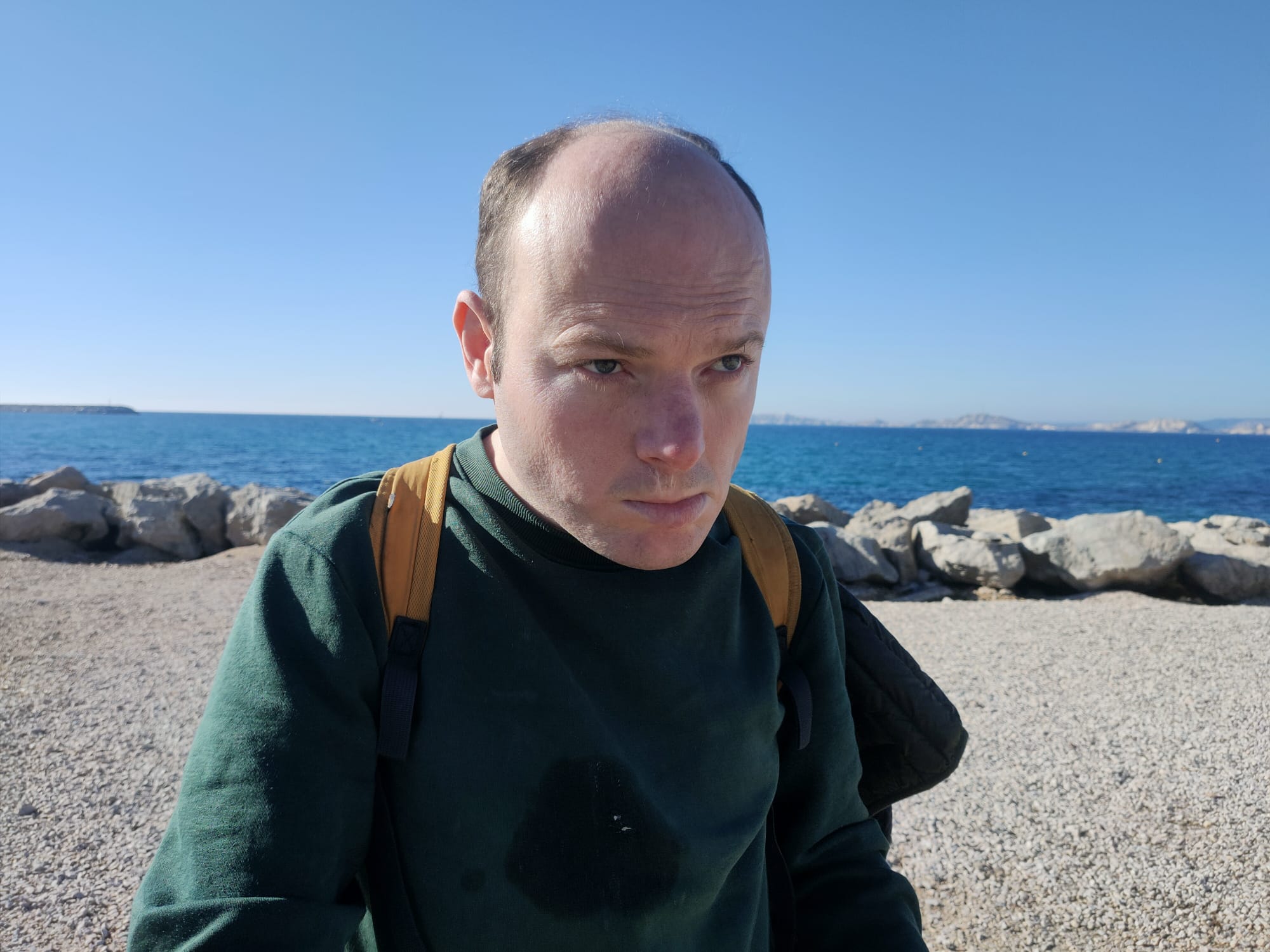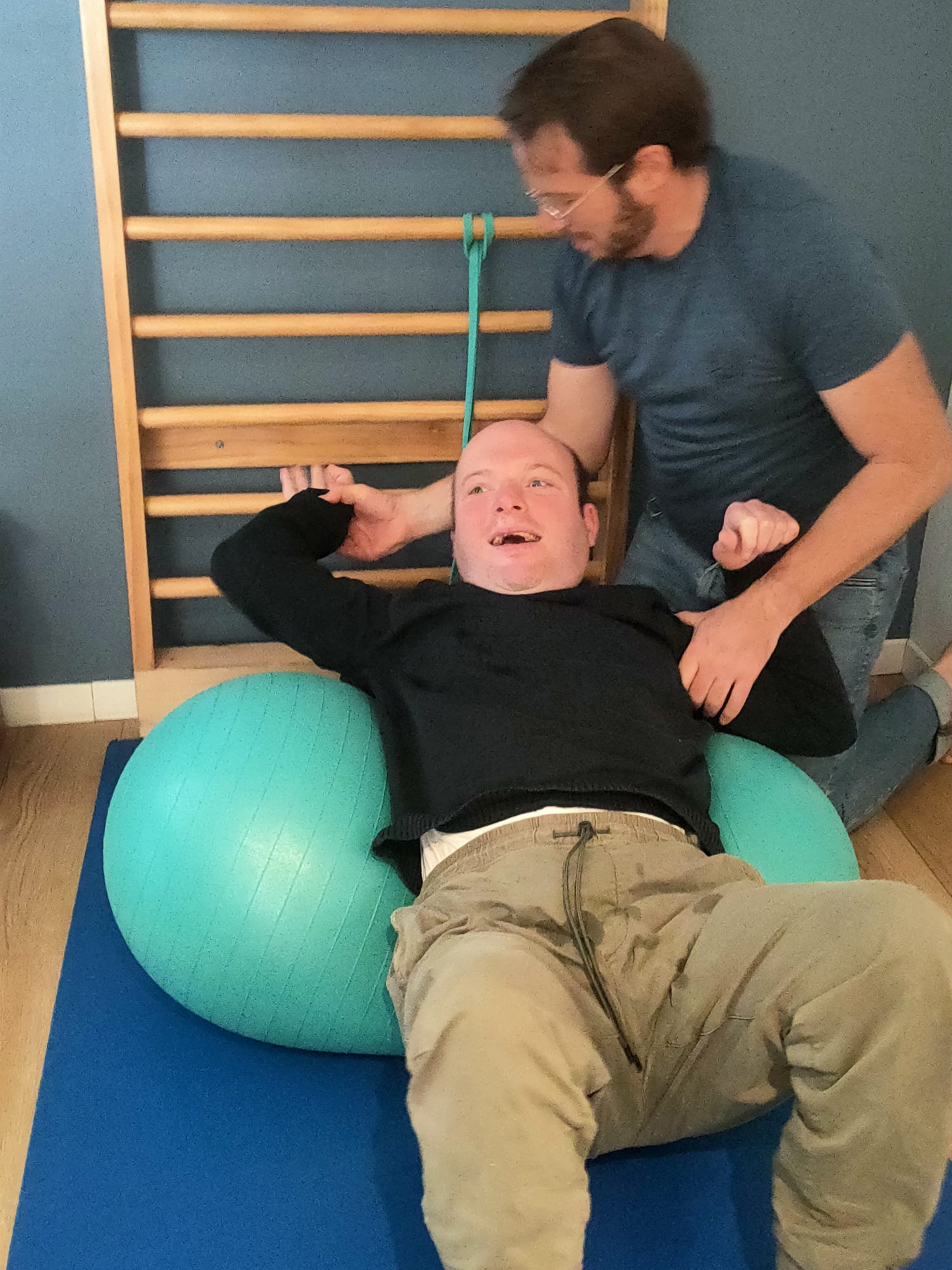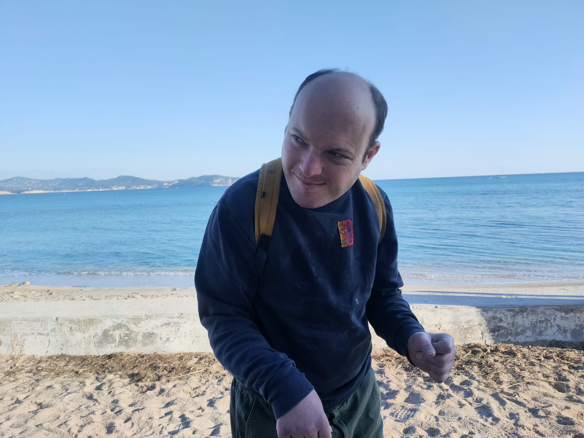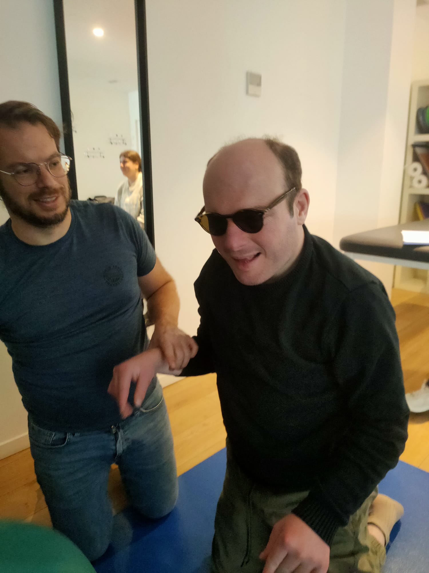le constat est le même, il a même du mal à tenir l’équilibre dans la douche. Nous nous rendons chez le kiné en début d’aprèm pour une séance d’étirement avec Louise, ce qui plaît toujours autant à Jéjé. Une fois sortis du rendez-vous, nous allons marcher au bord de mer à la Pointe Rouge. Jéjé a encore beaucoup de mal à tenir l’équilibre ; Après une chute sur les fesses, je dois marcher à côté de lui en le ceinturant de mon bras autour de son épaule afin de maintenir une stabilité latérale.