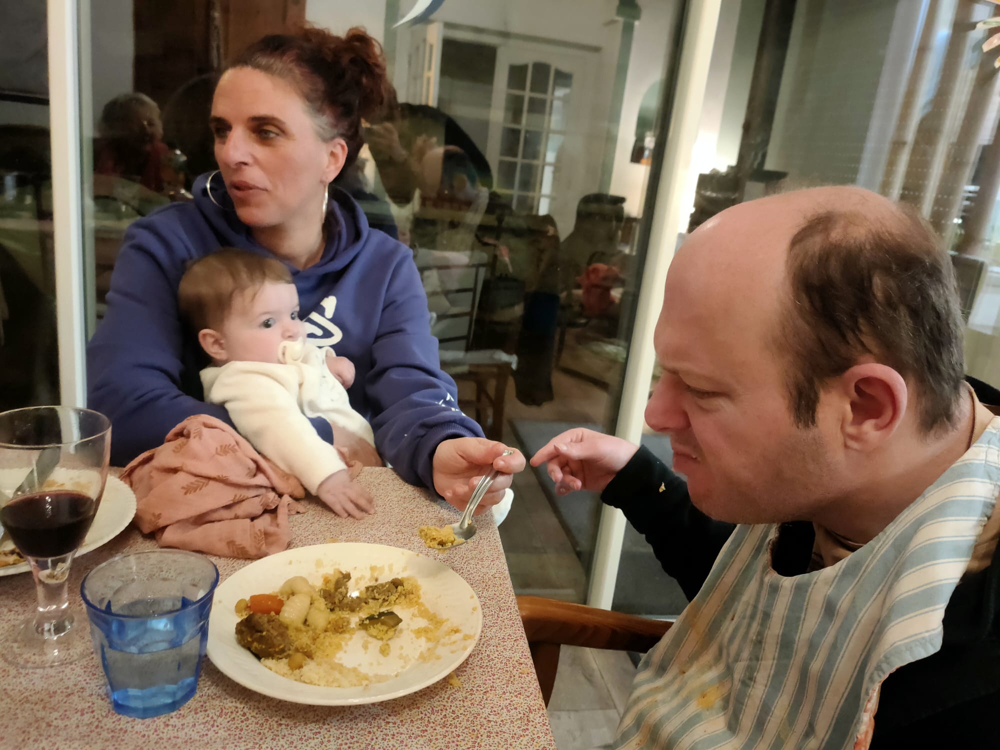 après une matinée de ménage et préparatif, nous déjeunons tous avec Charlotte qui vient prendre le relai pour le week-end.