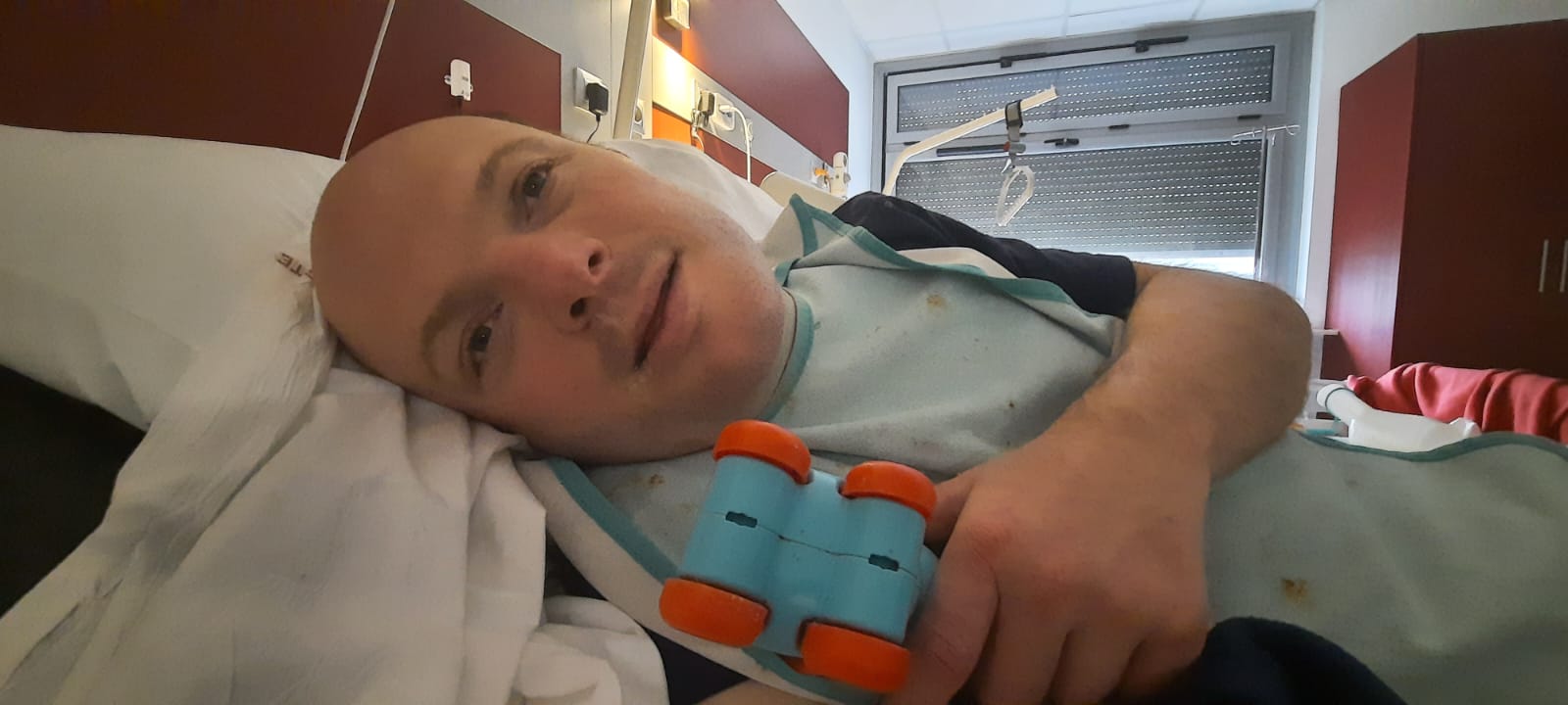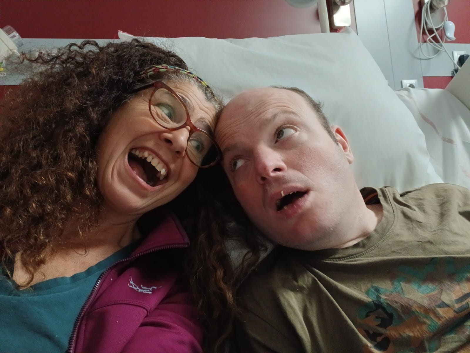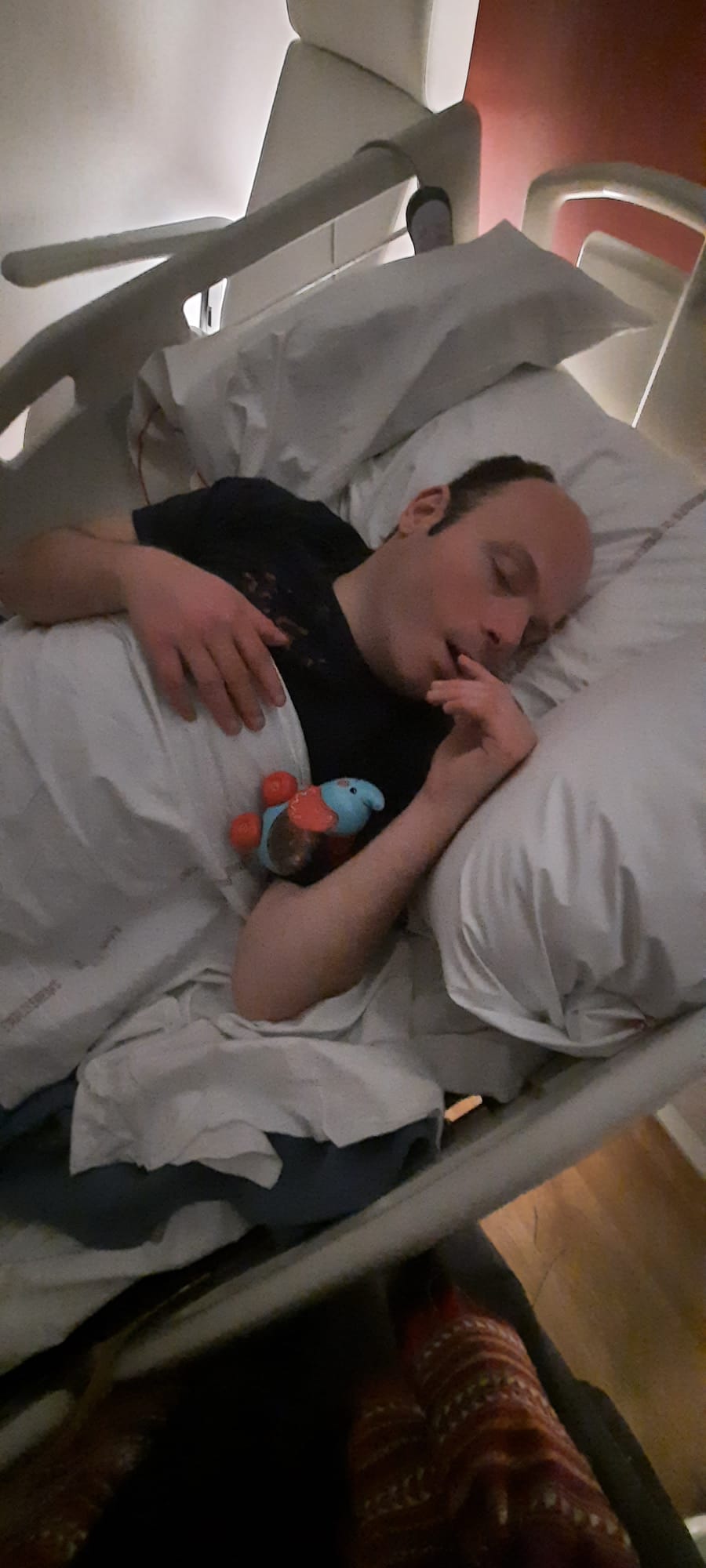 matin, j’accompagne Annick à l’hôpital. On va faire des relais toute la semaine afin que Jéjé ait une présence maximale. Jéjé va mieux. Il interagit et il veut même enlever par tous les moyens son bracelet au poignet c’est dire. Il dort cependant énormément car on lui a administré un lourd traitement. Le personnel de l’hôpital est au top, très dévoué.