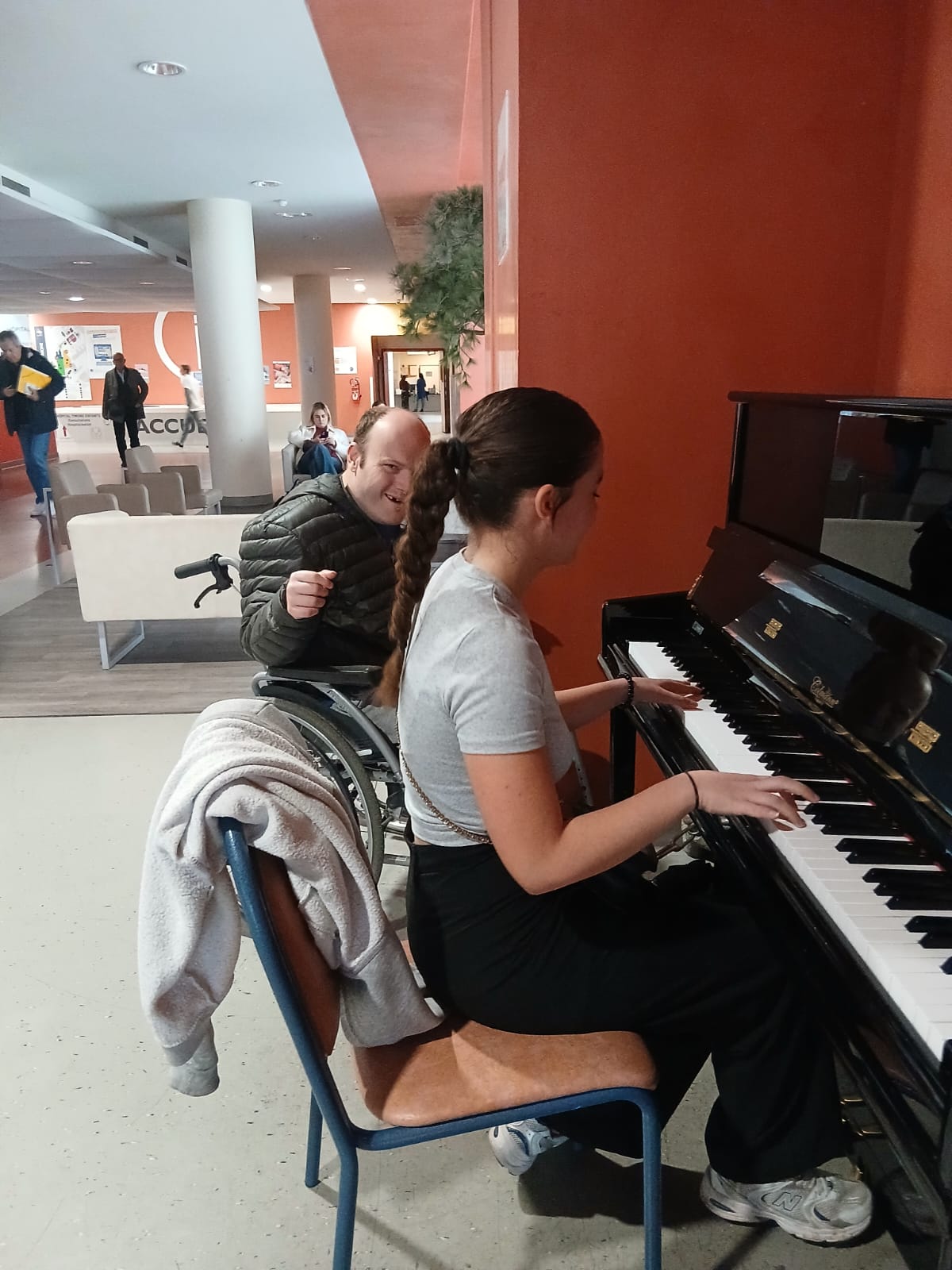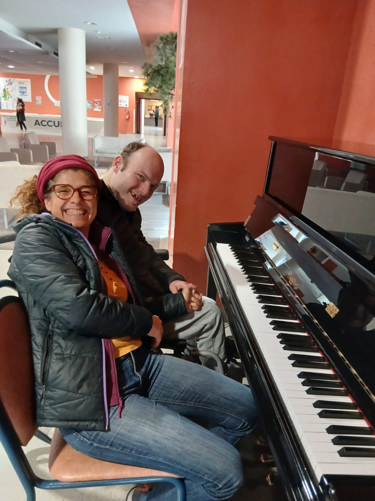 arrivée à 8h à l’hôpital pour le petit déjeuner que Jéjé prend à moitié endormi. Visite de la neurologue qui propose au vu de son endormissement du matin de diminuer le livotril (nouvelle molécule administrée) à 3 gouttes plutôt que 5 et de le garder en observation jusqu’au milieu de la semaine prochaine. Après un repas de truite fumée et d’apéricubes (c’était les choses qu’il voulait manger) je l’habille et pars avec lui faire quelques pas le long du couloir…dur dur. La marche, après une matinée au lit, est très incertaine. Nous croisons la kiné qui se joint à nous pour évaluer son équilibre…Un nouvel aller-retour du couloir et j’enchaîne pour un après-midi en extérieur. On passe un long moment au piano où Jéjé est très réceptif ; un petit garçon et une jeune fille viennent jouer tour à tour sous les yeux émerveillés de Jéjé. Petite promenade à pied dans le petit parc où Annick nous rejoint. Encore un peu de marche et nous rentrons en fauteuil en s’arrêtant au snack de l’hôpital pour un petit goûter bien mérité.