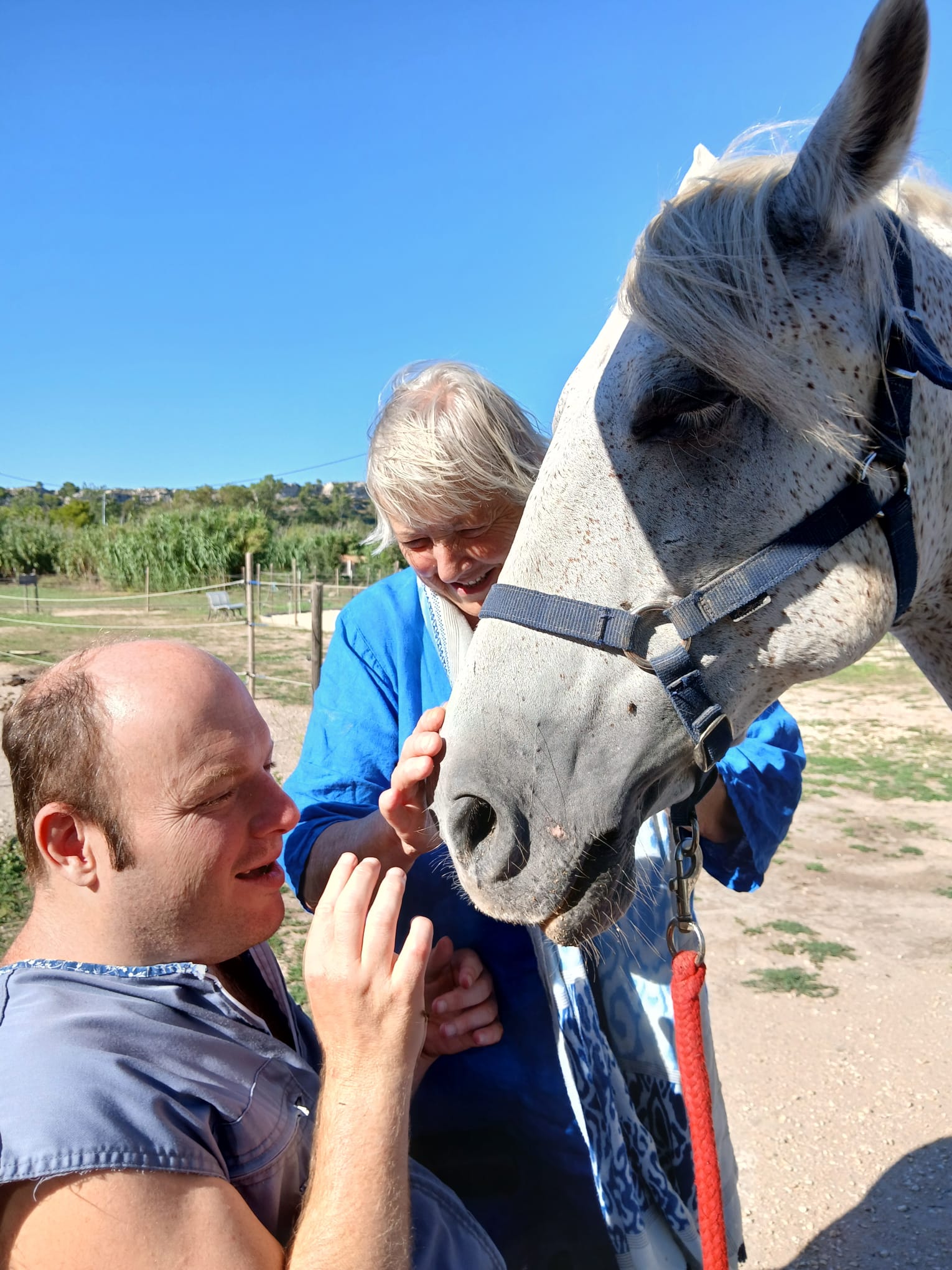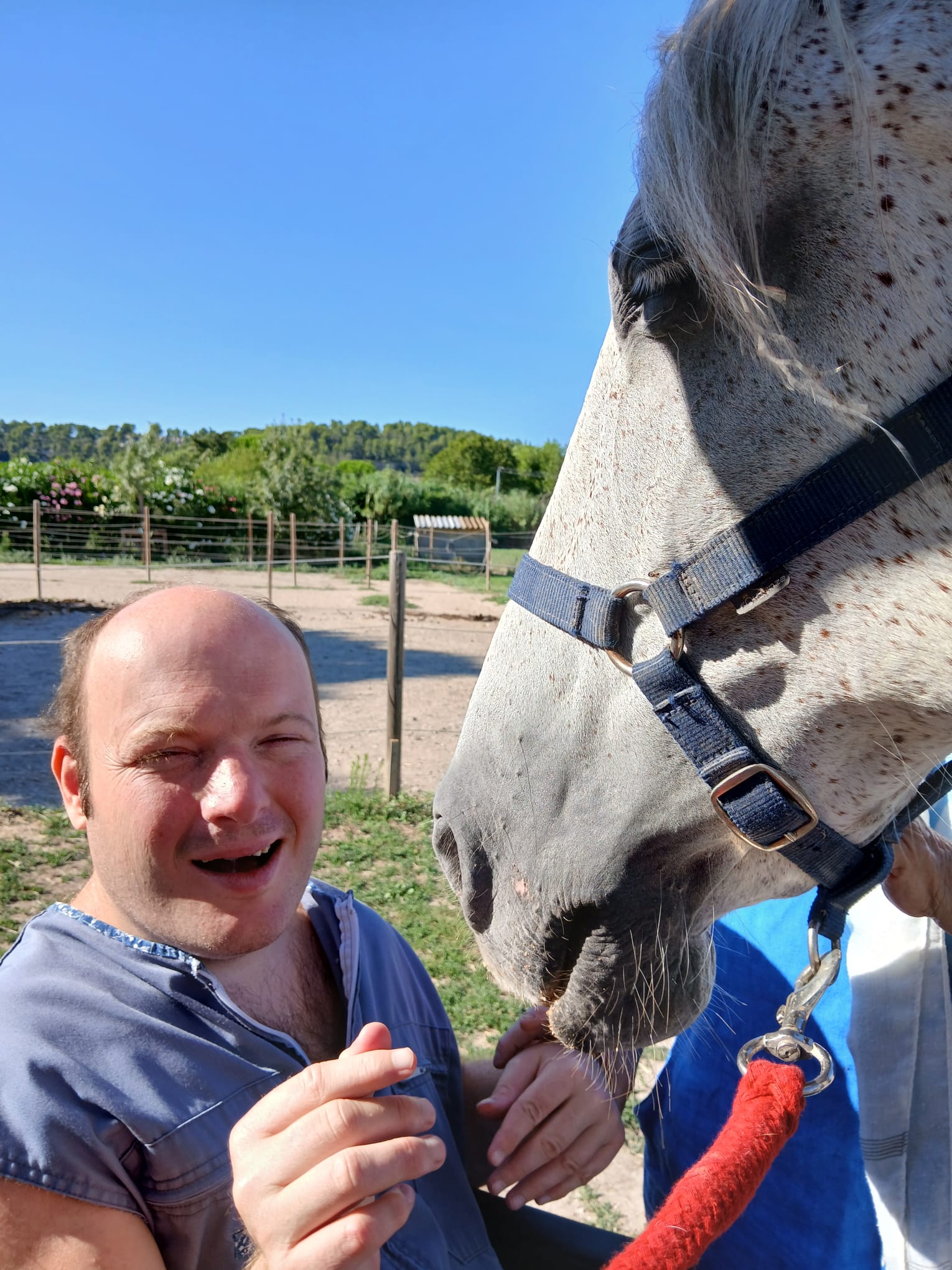 Jéjé nullement impressionné au contraire . Sourire et câlins avec deux jolis chevaux très sympas.