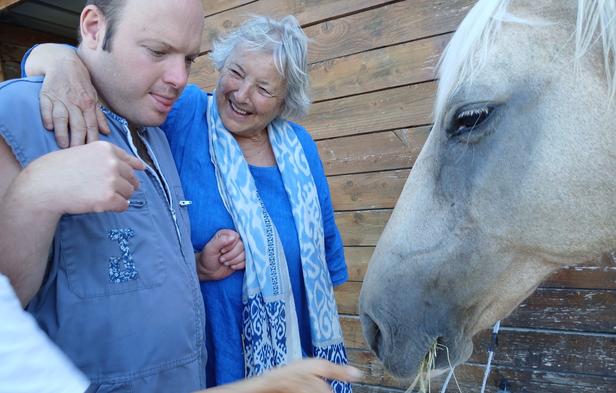 Visite aux chers copains de Jojo (mon mari) : les chevaux, avec Michelle, sa petite fille Chloé et Annick.