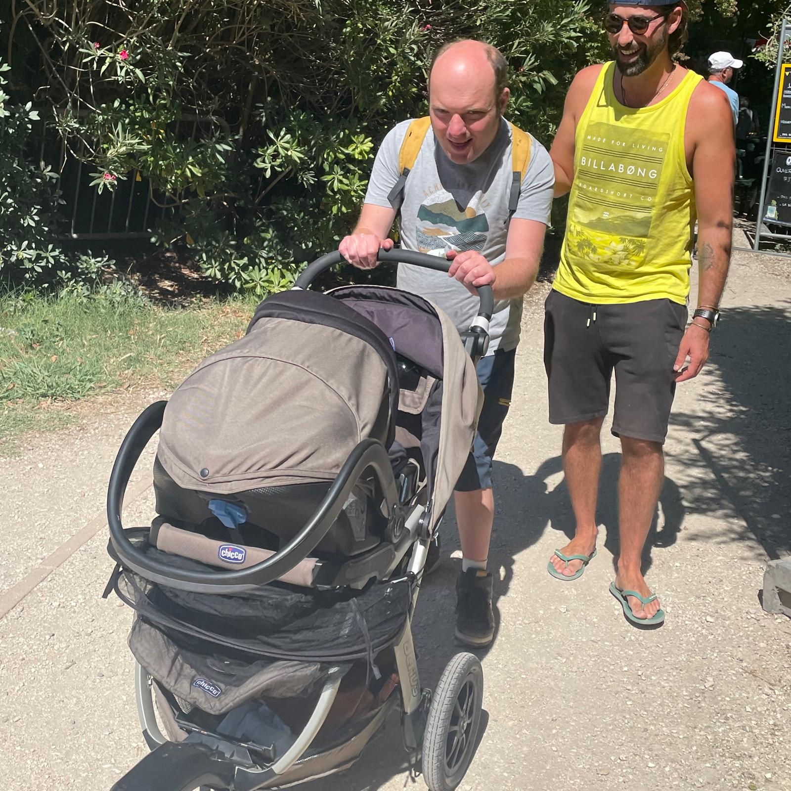 Apres midi venue d’un cousin d’Antoine, Mozart, avec sa femme et ses deux adorables petits garçons. Bain ensemble à la piscine et partage du goûter apporté, crêpes et confiture