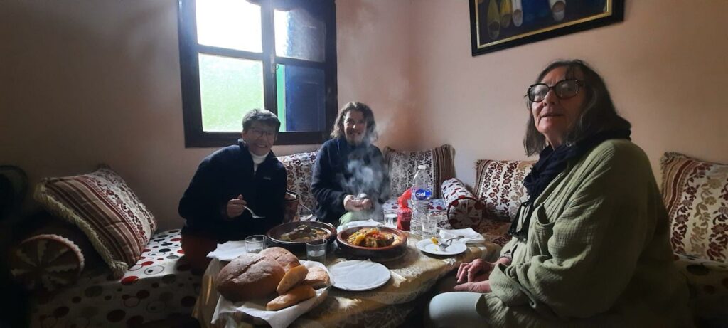 un repas tous ensemble. Couscous hyper bon chez nos potes berbères d’Aourir.